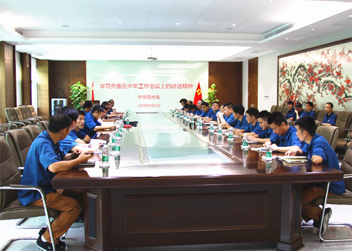 时维九月,序属三秋。9月2日,中丰田光电公司召开专题会议,深入学习贯彻乔鲁豫董事长在集团2020年半年工作会议上的讲话精神,并部署公司年度业绩冲刺阶段生产销售等有关工作。各部门主管级以上人员和储备干部全体到会仔细聆听、认真笔记,深入学习了讲话精神。会议由中丰田光电副总经理罗万里主持。
