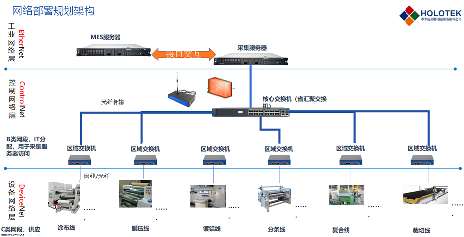 本次入选的基于激光镭射全息材料的一体化绿色智能制造管控平台项目是我司由工业1.0(标准化)提升到工业2.5(数字化、网络化)的水平,并最终达到工业4.0(智能化)战略布局中重要的一环。此项目是以MES 为核心,ERP为数据中台,基于智能制造的工业PaaS 云平台(iu ap)融合互联网与智能制造的创新技术,实现第三方软件系统、硬件设备集成应用,前端应用与互联网大数据联通,底层数据与生产现场联通,实现企业核心业务自上而下完全一体化应用。
